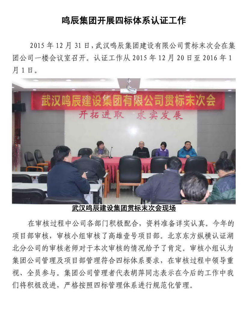 鳴辰集團(tuán)開展四標(biāo)體系認(rèn)證工作
