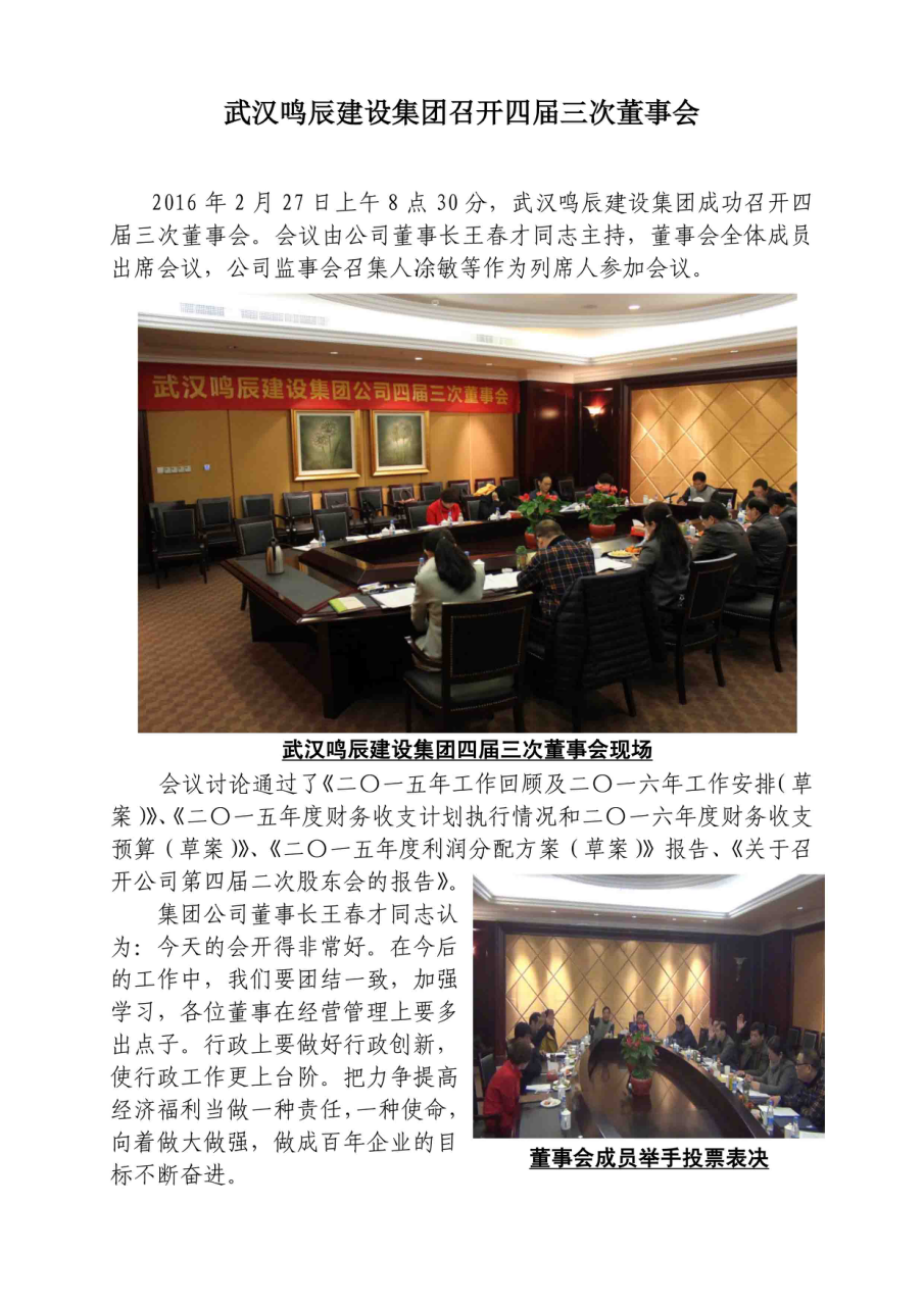 武漢鳴辰建設(shè)集團召開四屆三次董事會