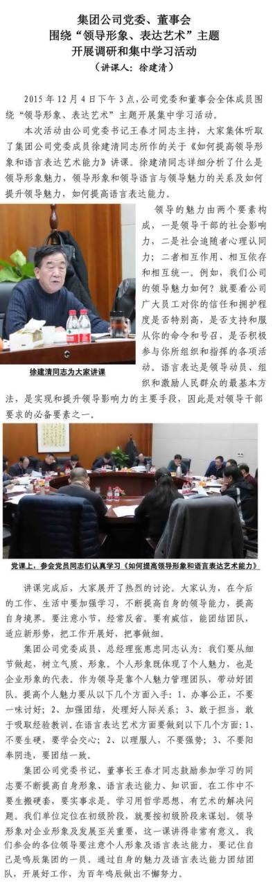 集團(tuán)公司黨委、董事會(huì)圍繞“領(lǐng)導(dǎo)形象、表達(dá)藝術(shù)”主題開(kāi)展調(diào)研和集中學(xué)習(xí)活動(dòng)