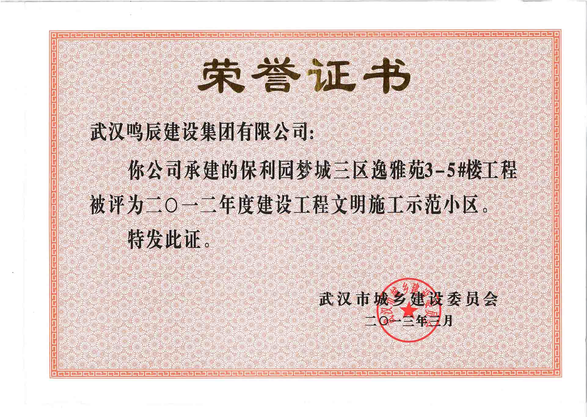 二〇一二年度建設(shè)工程文明施工示范小區(qū)