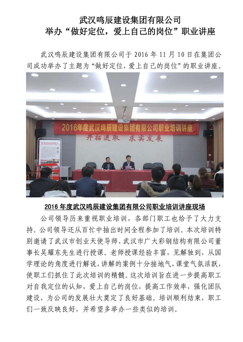 武漢鳴辰建設(shè)集團(tuán)有限公司舉辦“做好定位,愛上自己的崗位”職業(yè)講座