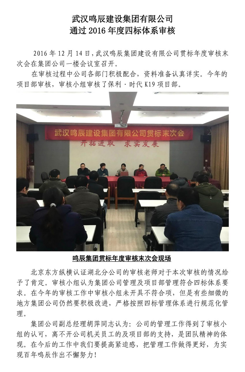 武漢鳴辰建設(shè)集團有限公司通過2016年度四標體系審核