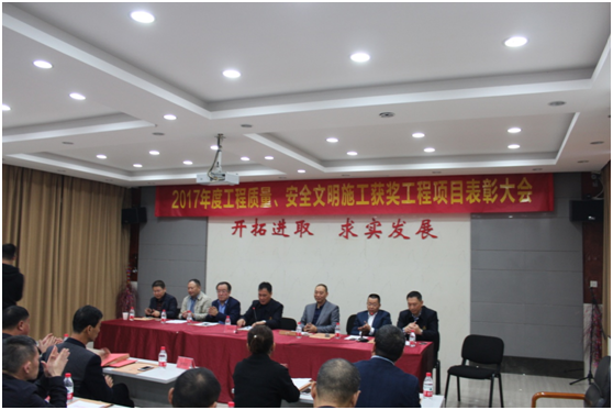 2017年11月9日,在武漢鳴辰集團(tuán)公司一樓會議室召開了2017年度工程質(zhì)量、安全文明施工獲獎工程表彰會。武漢市建筑業(yè)協(xié)會副會長兼秘書長李淼磊,武漢建筑業(yè)協(xié)會工程質(zhì)量委員會主任兼秘書長陳剛,武漢建筑安全協(xié)會副會長兼秘書長李祥林,中杰投資公司董事長池建國,勞動街辦事處黃主任,鳴辰集團(tuán)公司董事長王春才、總經(jīng)理張惠忠等領(lǐng)導(dǎo)及鳴辰集團(tuán)公司各基層單位負(fù)責(zé)人,各項目部負(fù)責(zé)人、技術(shù)負(fù)責(zé)人、安全管理負(fù)責(zé)人出席會議。