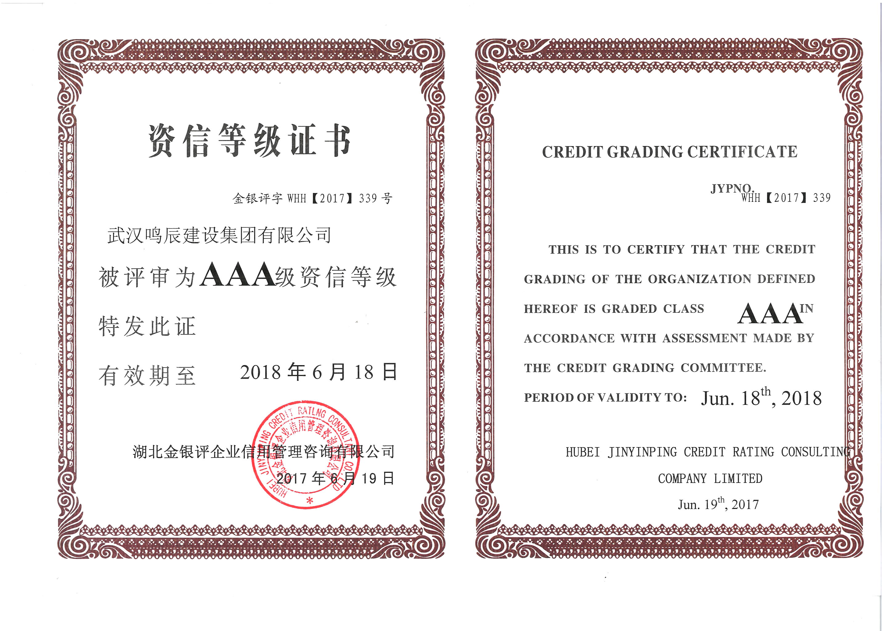 AAA資信等級(jí)證書