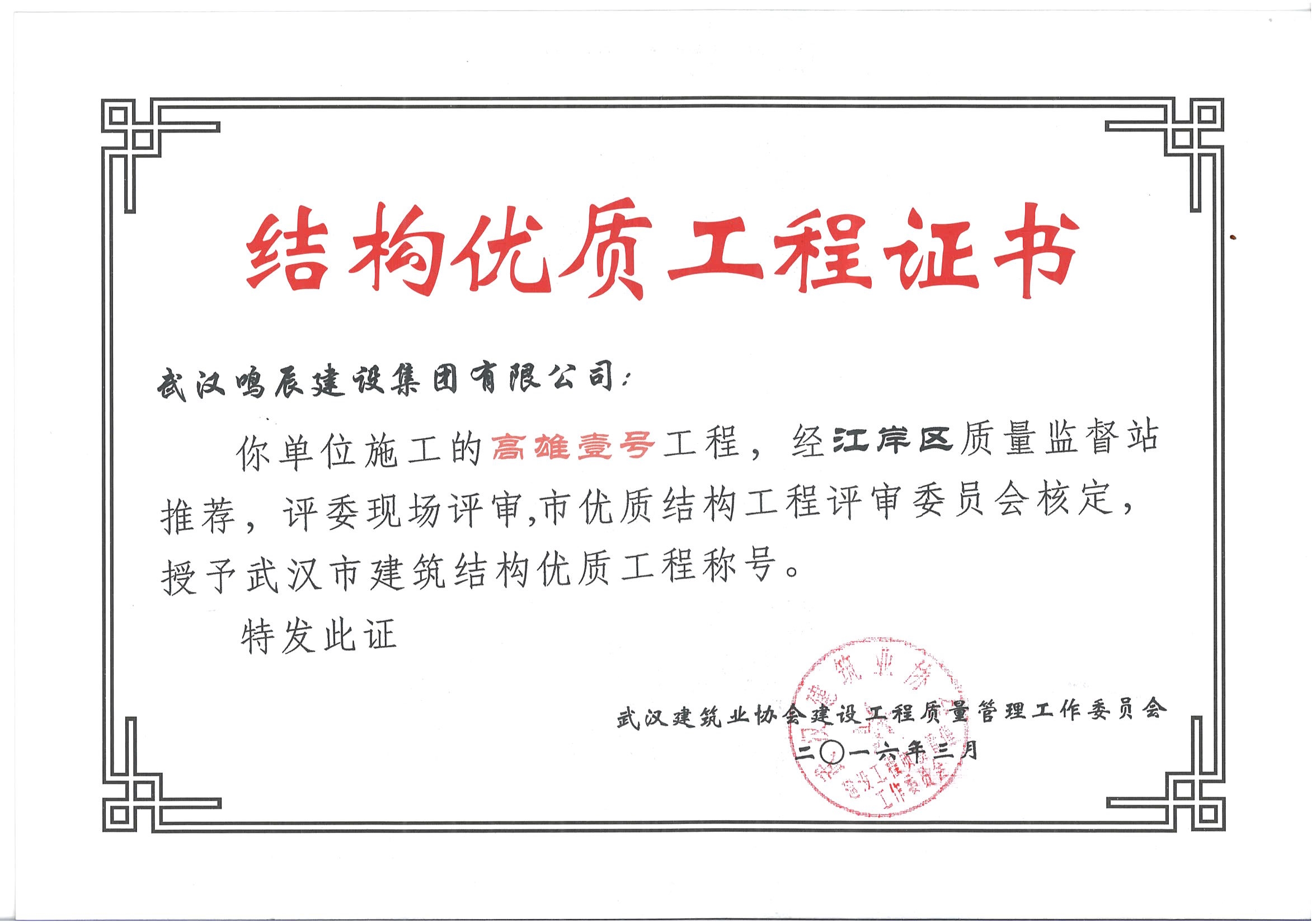 高雄壹號工程榮獲武漢市結(jié)構(gòu)優(yōu)質(zhì)工程榮譽(yù)