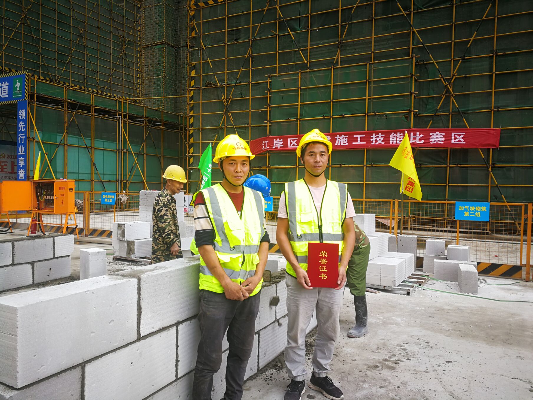 加氣塊砌筑技能比武項目,集團公司選派澳門路中海項目部2名砌筑工人組隊參加,該項目要求在規(guī)定時間完成一堵長3米、高1.5米墻體的砌筑,主要考察工人在墻體軸線位移、垂直度、表面平整度、灰縫厚度、豎縫寬度、砂漿飽滿度、錯縫搭接長度等各項指標控制上的操作技能,我司選手在規(guī)定的時間內(nèi)完成,成績斐然,贏得了較高的評價。