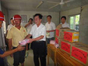 炎熱的八月烈日當(dāng)頭,集團(tuán)公司領(lǐng)導(dǎo)帶隊(duì),公司各部門(mén)參與,看望堅(jiān)持在施工一線的農(nóng)民工兄弟們,為正在高溫作業(yè)的他們送上了防暑降溫用品。至此,鳴辰集團(tuán)“2011年送清涼”活動(dòng)正式拉開(kāi)序幕。