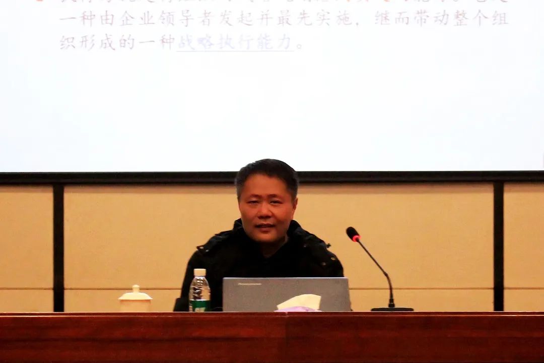 馮震教授授課領(lǐng)導(dǎo)執(zhí)行力授課。執(zhí)行力就是將組織的戰(zhàn)略規(guī)劃落到實(shí)處的能力。它是一種由企業(yè)領(lǐng)導(dǎo)者發(fā)起并最先實(shí)施,繼而帶動(dòng)整個(gè)組織形成的一種戰(zhàn)略執(zhí)行能力。馮教授結(jié)合“失街亭”的故事,告訴我們執(zhí)行力的重要性。“失街亭”的失敗不是戰(zhàn)略的問題,而是戰(zhàn)略執(zhí)行的問題。我們要解決好執(zhí)行力中“人”的問題,增強(qiáng)組織內(nèi)的目標(biāo)認(rèn)同度,增加有效溝通,做好有效控制;要處理好執(zhí)行力中運(yùn)行的問題,做好角色定位、用制度管人、做到定量評(píng)價(jià)。我們要通過(guò)提升執(zhí)行力,增強(qiáng)企業(yè)的競(jìng)爭(zhēng)力。