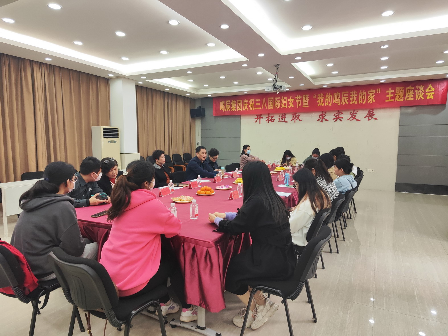 為了鼓舞廣大女職工在創(chuàng)建“百年企業(yè)”鳴辰夢的新征程中,奮發(fā)有為,巾幗建功的斗志,2023年3月8日,“我的鳴辰我的家”主題“三八”國際勞動婦女節(jié)慶?;顒釉诠疽粯菚h室圓滿舉行,集團公司黨政工領(lǐng)導、老同志代表、機關(guān)女職工等參加活動。慶?;顒佑勺剷凹w活動兩部分組成。在座談會上,公司領(lǐng)導與女職工進行了親切交流。