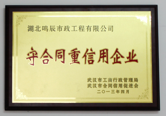 湖北鳴辰市政工程有限公司于2013年4月取得“守合同重信用”稱號(hào),這樣的證書(shū)可能對(duì)別的市政公司來(lái)說(shuō)是簡(jiǎn)單的,但對(duì)我公司來(lái)說(shuō)卻意味著一次飛躍,表達(dá)著對(duì)我公司過(guò)去工作的肯定,也對(duì)今后的工作提出了更高的要求。