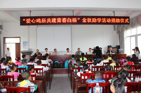 隨后舉行了助學(xué)活動捐贈儀式,受助學(xué)生代表進行了熱情洋溢的發(fā)言。鳴辰集團黨委書記、董事長王春才在會上作了積極的講話:一年多來在白楊坪的施工進展順利,受到恩施市白楊坪鎮(zhèn)政府和人民的大力支持,這次的金秋助學(xué)活動是鳴辰集團投身白楊坪建設(shè)的同時,為青春白楊教育發(fā)展所做的一點力所能及的工作,希望能對同學(xué)們的學(xué)習(xí)進步和身心健康起到積極的作用。下一步我們將進一步搞好項目建設(shè)的質(zhì)量管理、促進綜合開發(fā)項目的順利推進,在政府和人民群眾的支持下,順利完成項目各項預(yù)定指標(biāo)。為改善白楊坪住宅環(huán)境,為建設(shè)一個嶄新的白楊坪新鎮(zhèn),做出鳴辰集團應(yīng)有的貢獻。
