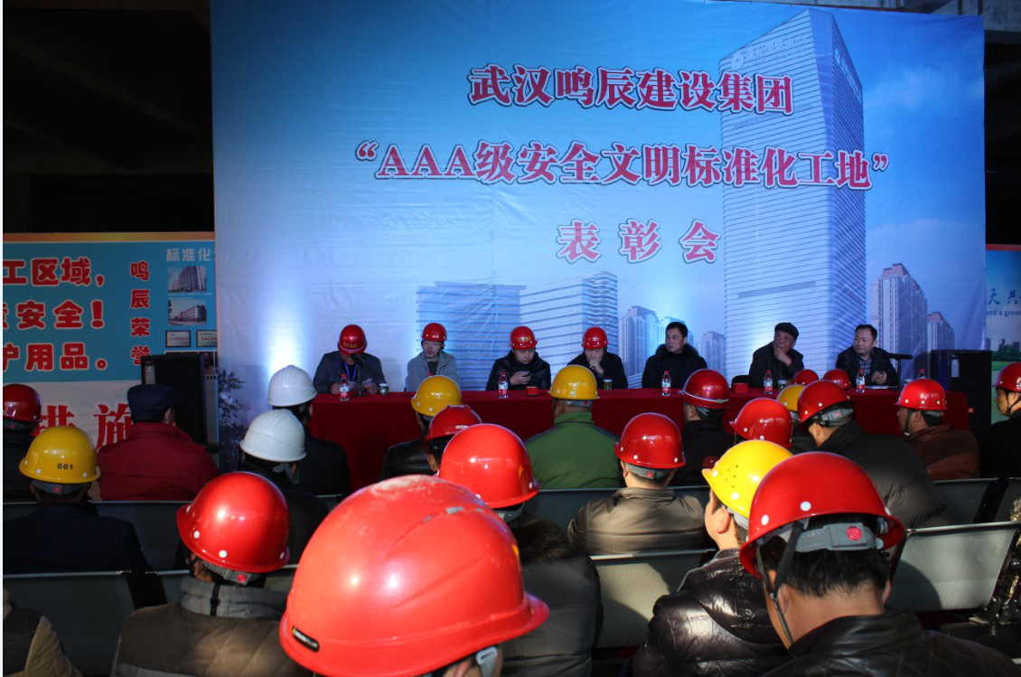 2014年12月12日,在保利時代K18地塊項目現(xiàn)場隆重召開“2014年鳴辰集團‘AAA級安全文明標準化工地’表彰會”活動。參加活動的有市區(qū)領導、業(yè)主方代表、集團公司領導及集團在建工程現(xiàn)場項目經(jīng)理、技術負責人等約60余人。會議由集團公司總經(jīng)理張惠忠主持,首先由該項目現(xiàn)場負責人陳景做創(chuàng)建工作經(jīng)驗交流,陳經(jīng)理將創(chuàng)杯伊始的各個環(huán)節(jié)的控制配合視頻資料進行了簡短的描述,集團公司董事長王春才、第二分公司經(jīng)理林育新給予項目部鼓勵和嘉獎,業(yè)主方保利地產(chǎn)也對鳴辰集團的付出也給予高度肯定,原武漢市安全協(xié)會會長操賢平對鳴辰集團創(chuàng)杯表示祝賀,同時也提出“鳴辰集團要進一步做大做強,首先就要多創(chuàng)精品工程,優(yōu)質(zhì)工程,把自己的品牌和口碑做出去?!?/span>