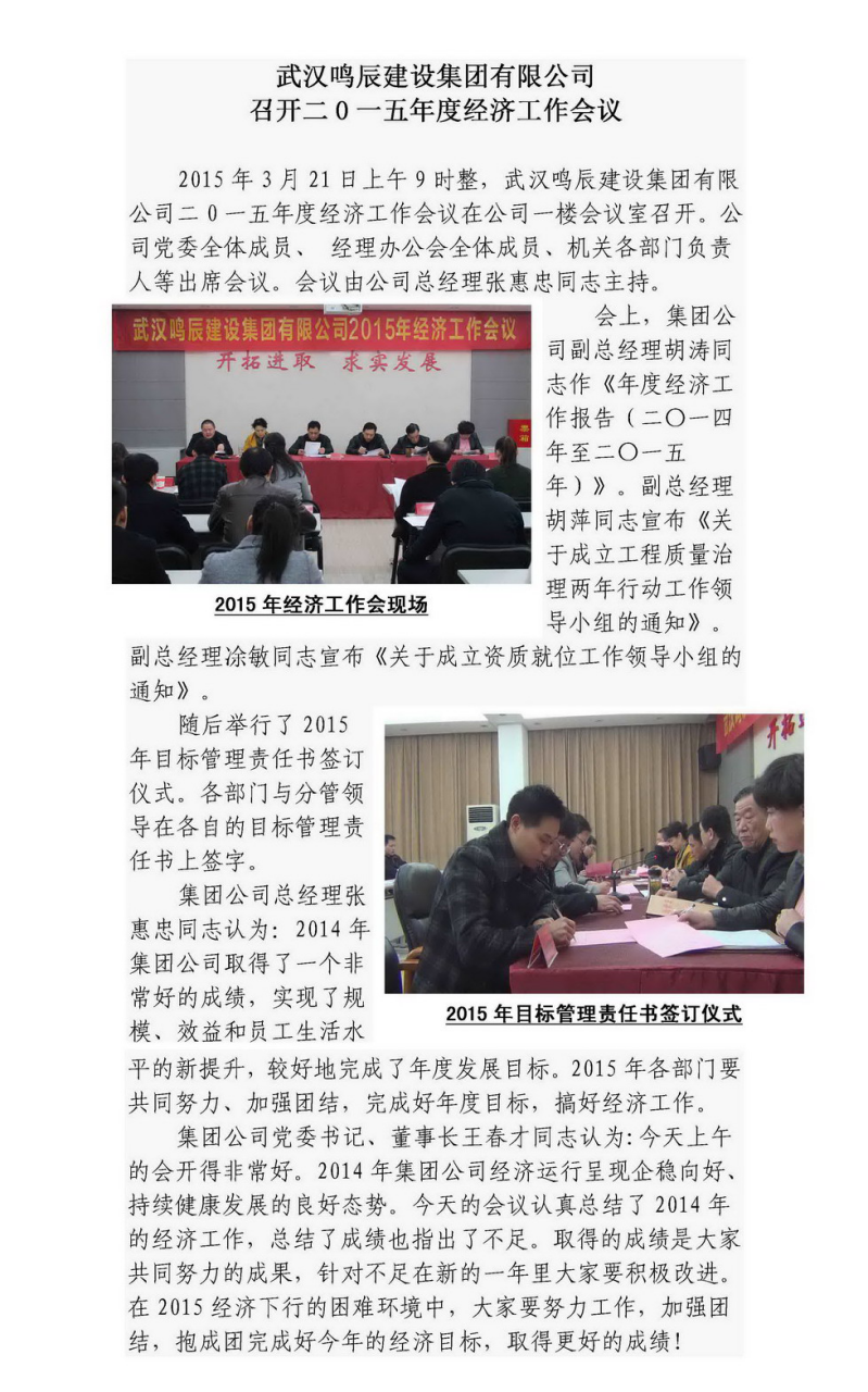 武漢鳴辰建設(shè)集團(tuán)召開二〇一五年度經(jīng)濟(jì)工作會議