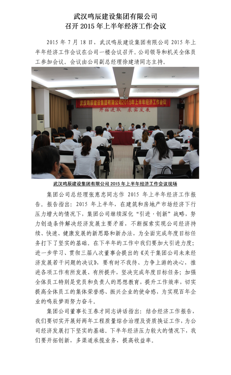 武漢鳴辰建設(shè)集團(tuán)有限公司召開2015年上半年經(jīng)濟(jì)工作會(huì)議